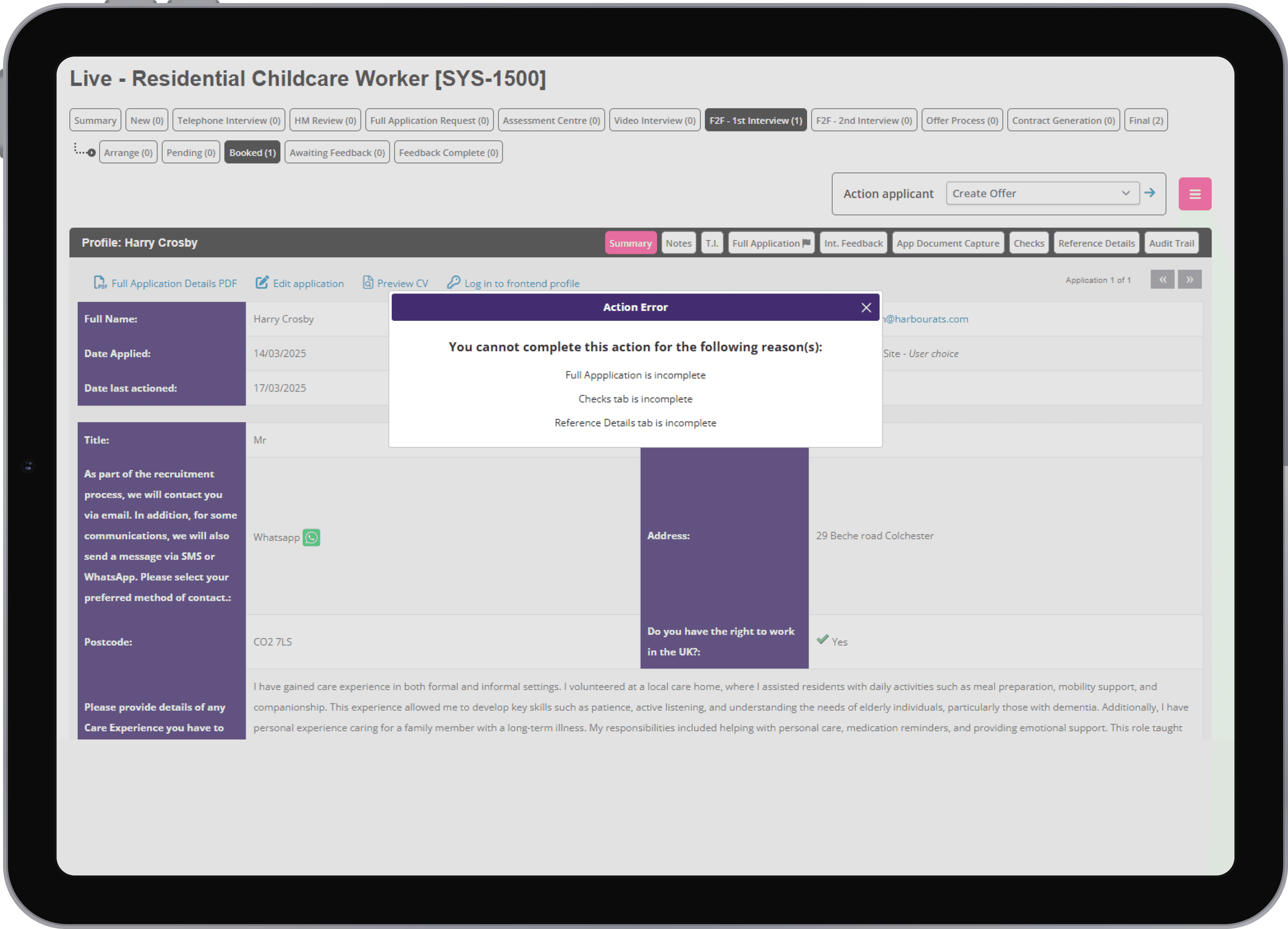 Keep candidates engaged from day one with a streamlined portal that cuts out manual admin and day-one no-shows - accelerating background checks and giving you a complete safer recruitment audit breakdown.