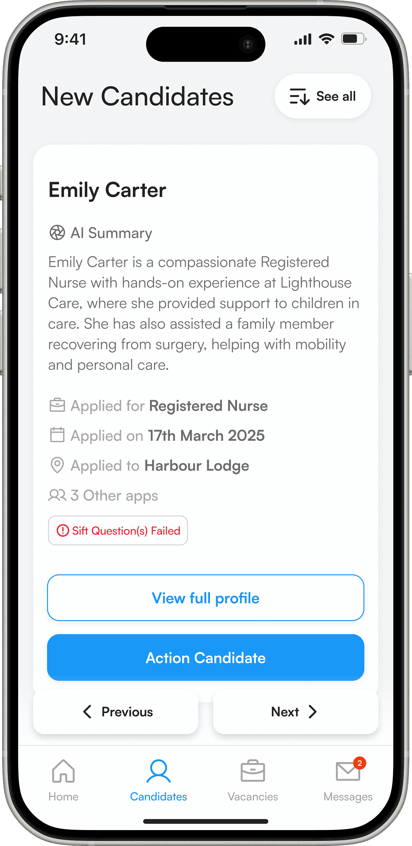 With over 17 years’ experience building recruitment solutions and extensive partnerships with healthcare providers, we’ve established our Safer Recruitment Solution (SRS) to meet the exacting needs of social care in a cost-effective, packaged offering. From quick candidate communications to robust compliance steps, Harbour SRS is designed to help you run a more efficient, cost-effective hiring process - bringing in top-quality team members while eliminating admin delays and regulatory headaches.